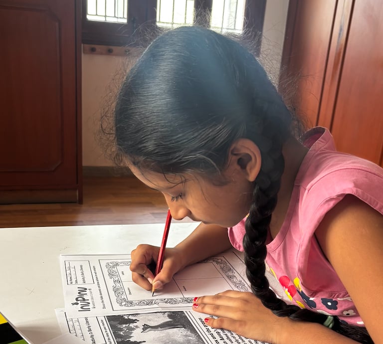 The InuPinu English Language Development Program is a comprehensive learning journey designed for children to build clarity, fluency, and confidence in the English language. Through a blended approach of phonics, word decoding, reading, writing, spoken English, and creative writing , we help children strengthen their foundations and express themselves with ease. Every session is carefully crafted to make learning joyful, meaningful, and deeply engaging, ensuring children don’t just learn English, but learn to use English in real-life situations.