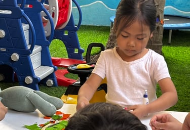We gently nurture each child’s ability to listen, speak, and express with confidence. From singing rhymes and talking about pictures to listening to stories and recognizing letter sounds, children develop early language comprehension and phonemic awareness in joyful, meaningful ways. Our teachers guide conversations that build vocabulary, imagination, and early literacy skills, without pressure, just encouragement.