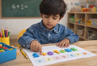 In LKG, number sense becomes second nature. Children confidently count and write numbers from 1 to 100, understand more/less, equal to, and place value (units, tens, hundreds, thousands), and begin reading number names (1–10). Through hands-on tools, they build and split numbers based on place value, learn ordering and comparing, count backward (20 to 1), and begin simple addition. They also explore ordinal numbers, skip counting, and reading three-digit numbers, all in ways that feel fun and achievable.