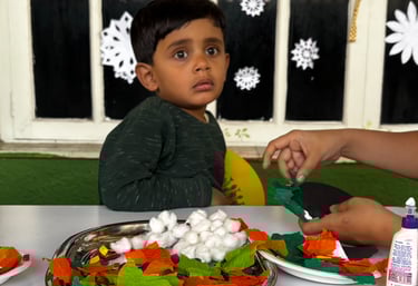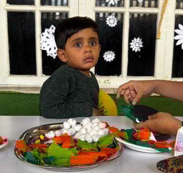At this stage, little hands are busy getting ready for future writing! Children engage in art and craft, colouring, tracing, and freehand drawing, all designed to improve their fine motor skills and pencil control. These playful, tactile experiences also spark creativity and help them build focus, all while having fun with colours, textures, and patterns.
