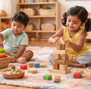 In our Nursery program, children begin to sharpen their senses by exploring the world around them. They learn to identify objects, colours, shapes, and sizes, while also starting to notice simple patterns in the environment. These foundational skills support critical thinking and visual-spatial development in playful, tactile ways.